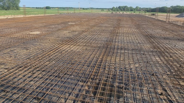 Armatūros rišimas, armatūros tinklų įrengimas pagal pateiktą projektą.